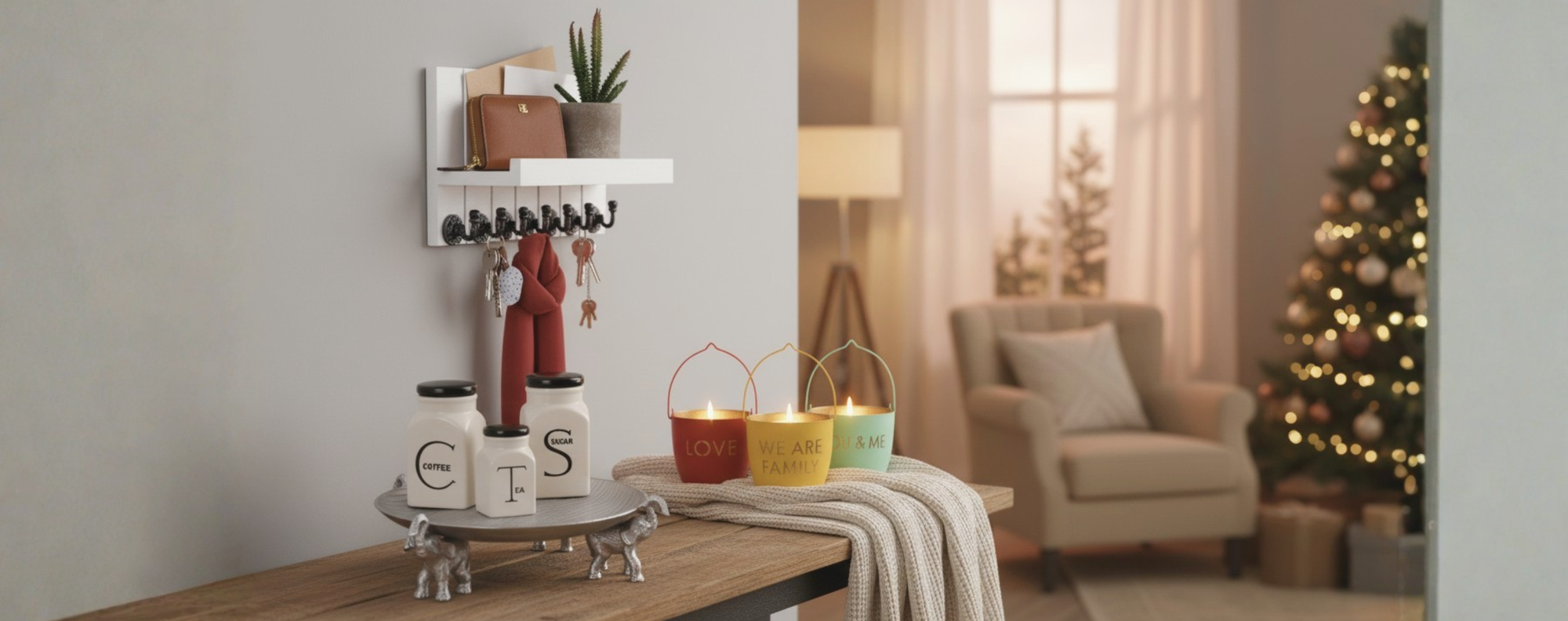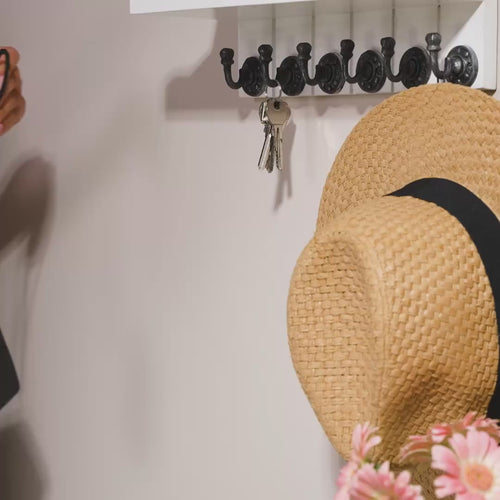 Wall Key Holder with Shelf & Coat Hooks - Wall Shelf with Hooks